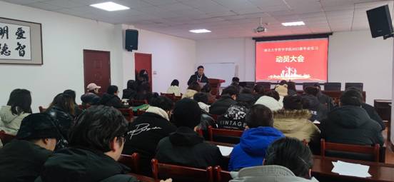 2024年3月1日上午11:00,公司在逸夫人文楼D2008会议室开展了2021级本科生毕业实习动员大会。本次动员会由经理助理陶文佳老师主持,公司党委副书记王翠、团委书记董力、2021级班主任庄严和2021级全体本科生参加了本次会议。