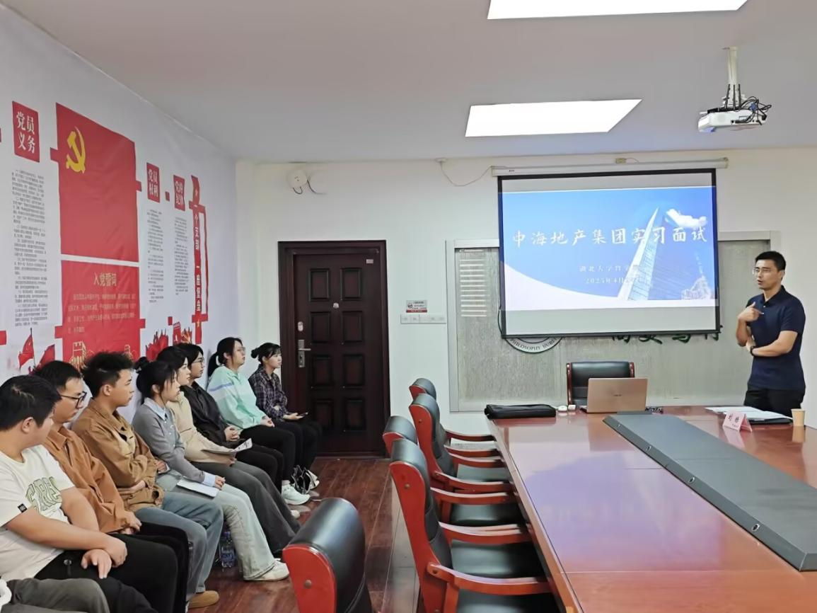4月24日下午,中海地产武汉公司在公司D3004举办暑期实习生专场招聘会。中海地产人事行政部业务经理刘赫作为主讲嘉宾,为在场员工带来了一场精彩的职业发展分享会。