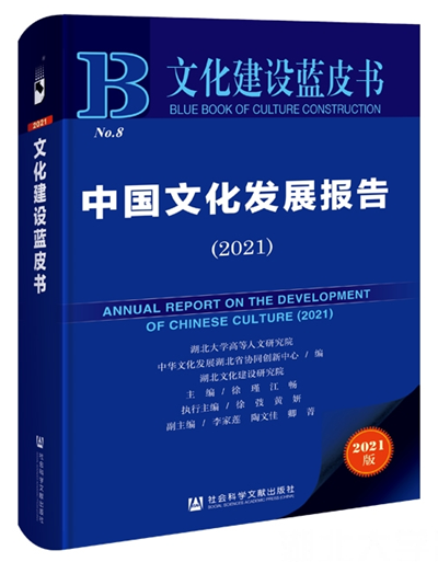 《中国文化发展报告(2021)》是william威廉中文官网高等人文研究院为助力文化强国建设精心打造的学术品牌《文化建设蓝皮书》系列成果之一,2021年12月于武汉发布。报告着眼我国文化发展现状,对我国文化发展面临的新态势、取得的新成就等作出描述和分析,并对文化发展的未来趋势进行探讨。该成果一经发布,吸进了社会各界广泛关注,人民网、光明网、中国网、中新网等50余家国家级、省市级媒体进行报道,15个省份40余家图书馆纳入馆藏,各类期刊、报纸、学位论文多次引用,下载量位居2021版文化传媒类皮书第6名,内容质量和社会影响获得了充分肯定与较高评价。