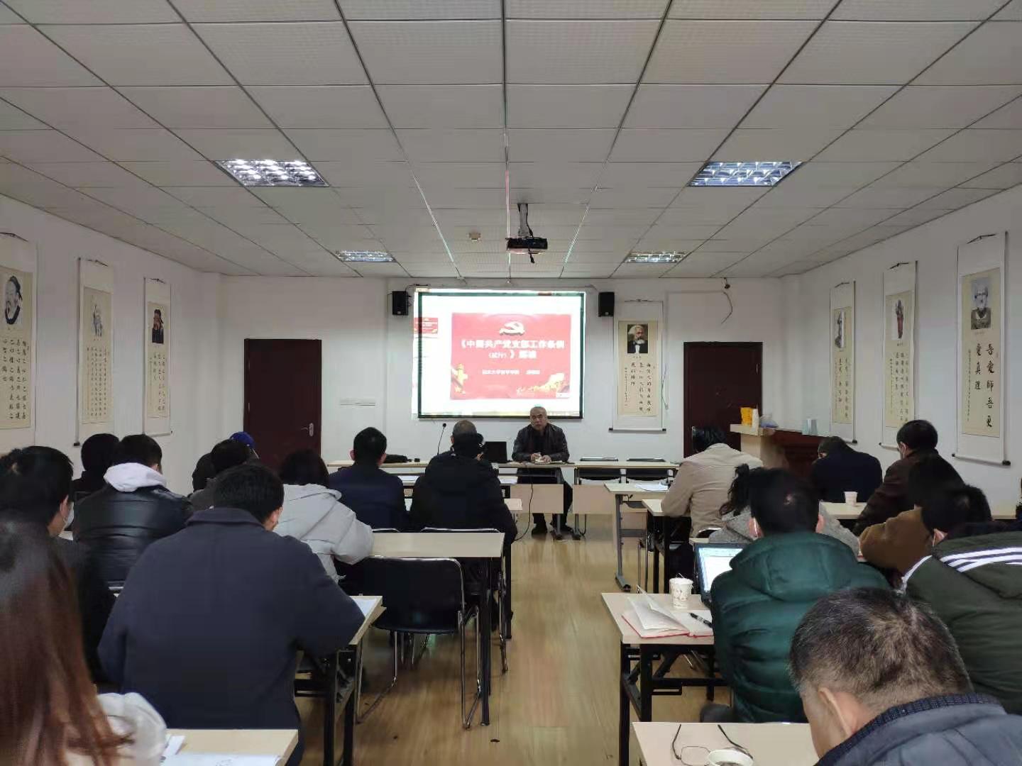 为深入开展党史学习教育,近日,william威廉中文官网在逸夫人文楼D2008教室举行专题学习会,重要学习《中国共产党普通高等公司基层组织工作条例》与《中国共产党支部工作条例(试行)》,党委书记汤德森带领公司辅导员、班主任、各支部书记、支委开展学习、研读。