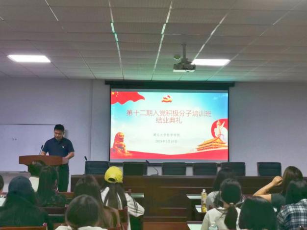 陈文超代表公司党委对培训班学员顺利结业表示祝贺,并作结业典礼总结讲话。他强调,第一,要树立终身学习理念,持续加强党的创新理论学习,坚定理想信念;第二,要端正入党动机,在接受组织教育和考验中切实解决入党为了什么、为什么入党、入党后怎么做的问题;第三,要坚持学以致用、知行合一,在学习实践中时刻发挥先锋模范作用,以实际行动争取早日入党。