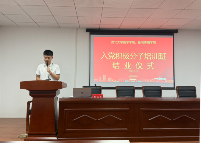 随后,结业仪式在庄严的国歌声中启幕。2024级中哲专业研究生刘欣悦作为学员代表发言,她以“不忘初心、砥砺前行——青年党员的使命与担当”为题,代表全体学员向组织培训的老师和同学们表示感谢,对培训期间课堂讲授的理论知识进行了梳理和回顾,并结合培训感悟阐述新时代青年如何将个人理想融入国家发展大局,号召全体学员在全面建设社会主义现代化国家新征程中践行初心、拼搏奉献。