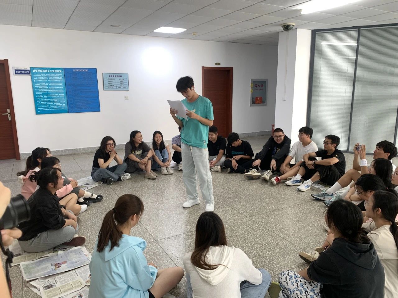 主持人介绍完规则后,同学们围成圈开始了这一场脑力和反应力的追逐赛,不少同学为大家带来了精彩的表演,同学们在欢声笑语中结束了这场游戏。