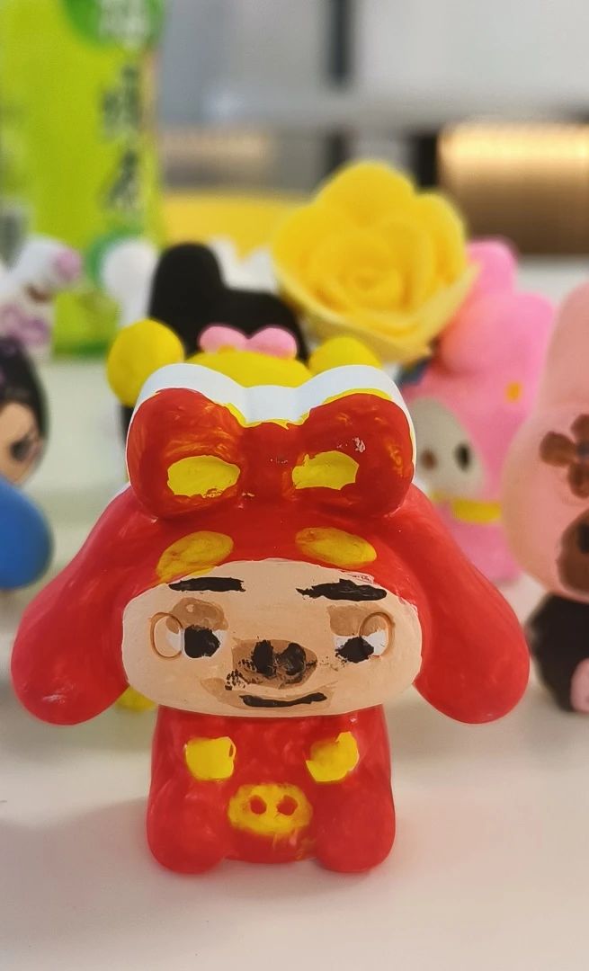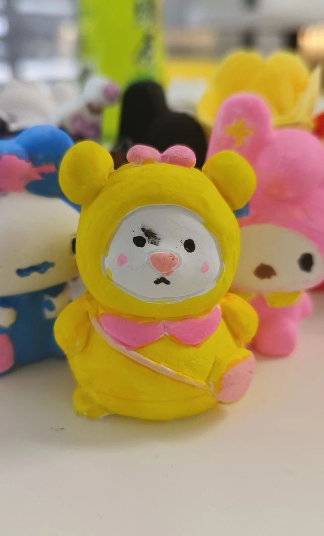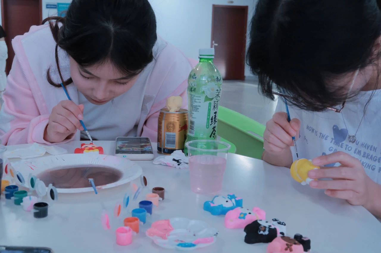 玩完集体游戏,同学们开始沉浸式石膏娃娃DIY和橡皮泥塑。石膏娃娃的绘制需要耐心,一笔一划反复描摹。这一笔一划绘制出的色彩,是绽放于我们心中的浪漫,亦是我们专注于一件事的态度。