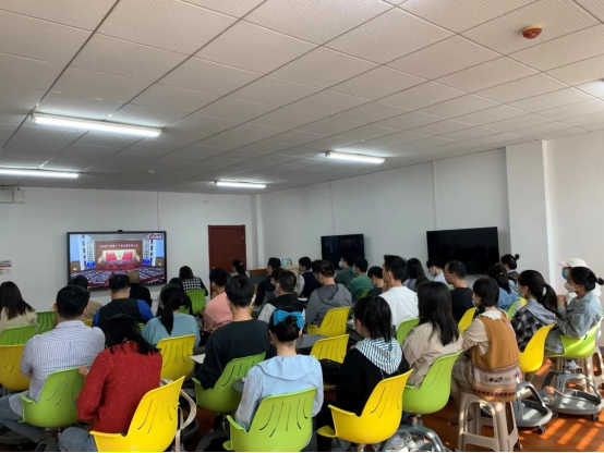 会议伊始,在团支书的带领下全体员工起立齐唱团歌,铭记共青团员初心。