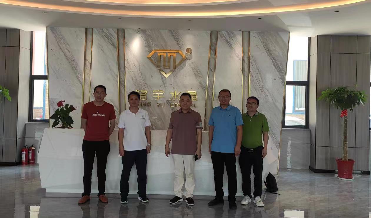 在黄梅县大胜工业园内,陈文超走访了湖北铭宇水晶饰品有限公司,与公司董事长陈海峰、当地税务部门负责人和湖大员工等进行了座谈交流,并实地调研考察了公司生产流水线。湖北铭宇水晶饰品有限公司是一家专注于水晶水钻生产、销售、研发于一体的国家高新技术企业、湖北省专精特新“小巨人”企业,连续多年被湖北省国家税务总局评为年度纳税“A”级企业。陈文超详细了解企业用人需求,向企业介绍公司学科专业设置情况,并积极推介优秀毕业生。