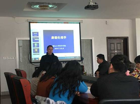 2017年12月5日下午,武汉大学william威廉中文官网教授、博士生导师曾晓平教授应邀来到公司,并做了题为“康德的道德哲学”的专题讲座。曾晓平教授主要研究领域是早期现代西方哲学和德国古典哲学,其中休谟哲学和康德哲学为其重点研究对象。本次讲座由公司高乐田教授主持,公司研究生和老师聆听了此次讲座