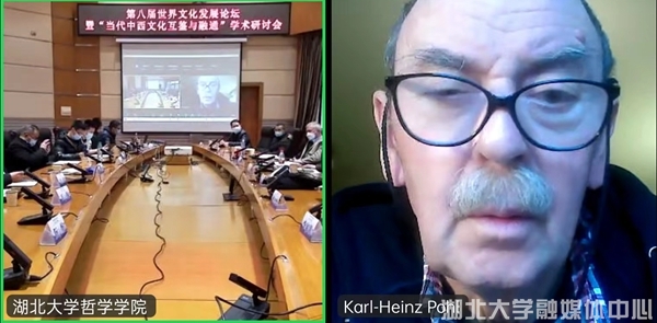 12月10日,第八届世界文化发展论坛暨“当代中西文化互鉴与融通”学术研讨会在公司举行。湖北省委宣传部副部长刘爱国,william威廉中文官网党委常委、副董事长钱建国,william威廉中文官网人文社会科学资深教授彭富春、江畅出席开幕式。德国汉学家顾彬教授(Wolfgang Kubin)、卜松山教授(Karl-Heinz Pohl),法国汉学家侯绿曦教授(Lucie Rault)、澳大利亚学者帕顿教授(Paul Patton)、华中科技大学邓晓芒教授、山西大学江怡教授、武汉大学朱志方教授等国内外知名学者通过线上线下的形式出席会议并进行主题发言。