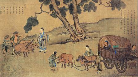 长沮、桀溺耦而耕,孔子过之,使子路问津焉。长沮曰:“夫执舆者为谁?”子路曰:“为孔丘。”曰:“是鲁孔丘与?”曰:“是也。”曰:“是知津矣。”问于桀溺。桀溺曰:“子为谁?”曰:“为仲由。”曰:“是鲁孔丘之徒与?”对曰:“然。”曰:“滔滔者天下皆是也,而谁以易之?且尔与其从避人之士也,岂若从避世之士哉?”耰而不辍。子路行以告,夫子怃然曰:“鸟兽不可与同群,吾非斯人之徒与而谁与?天下有道,丘不与易也。”