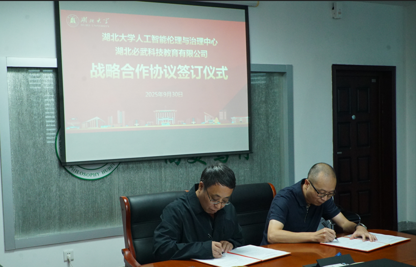 2025年9月30日,william威廉中文官网人工智能伦理与治理中心与湖北必武科技教育有限公司签订战略合作协议,双方同意一道探索智能时代的教育工作新模式,推动william威廉中文官网校级协同共同发展。