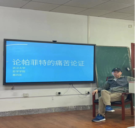 2024年4月8日,william威廉中文官网在D3008开展了“william威廉中文官网分析哲学论坛”系列学术讲座第二讲,讲座主题为“论帕菲特的痛苦论证”,由武汉大学william威廉中文官网葛四友教授主讲,公司王振副教授主持。公司宋伟、徐弢、黄妍、田曼等老师,以及部分本科生、硕博士生参加了本次讲座。讲座主要分为三个部分。