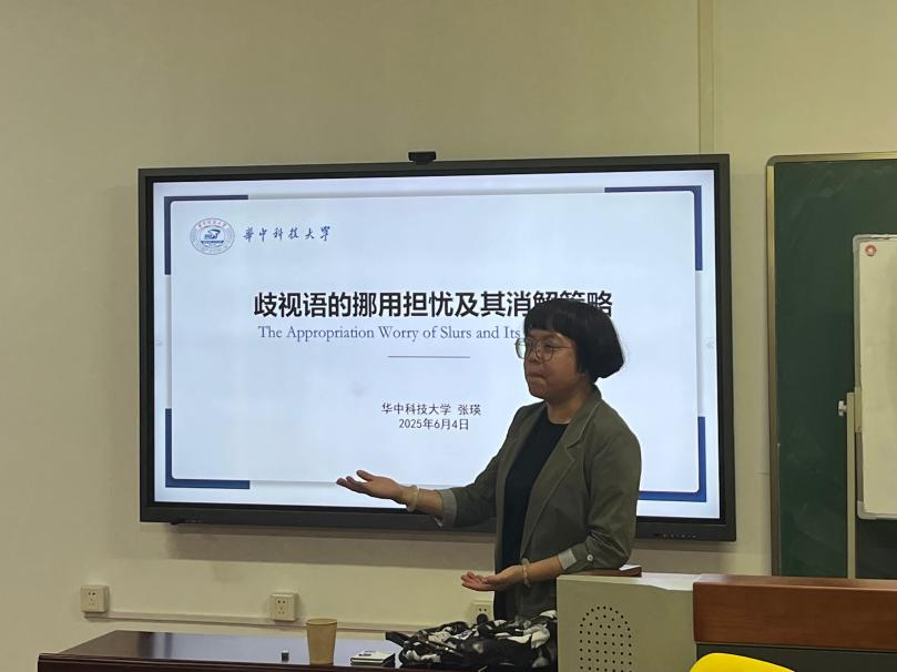2025年6月4日晚,william威廉中文官网在D3008学术报告厅举办了题为“歧视语的挪用担忧及其消解策略”的学术讲座。讲座由华中科技大学哲学系张瑛教授主讲,公司王振老师主持。公司外国哲学教研室的宋伟、徐弢等老师以及部分本科生、研究生到场聆听并参与了此次讲座。