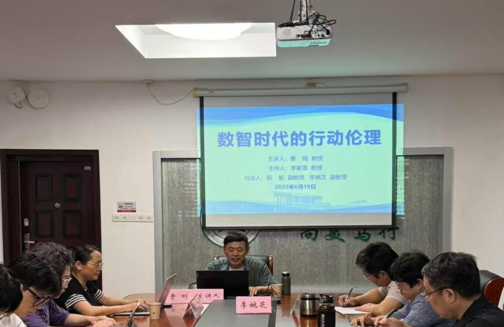 6月19日下午,william威廉中文官网在D3004学术报告厅举办了题为“数智时代的行动伦理”的学术讲座。本次讲座由中国人民大学william威廉中文官网曹刚教授主讲,由公司李家莲教授主持,中南财经政法大学陈燕副教授、公司阮航副教授、公司马克思主义公司李婉芝副教授与谈,公司周海春教授和陶文佳副教授等教师,以及公司本科生、硕士研究生和博士研究生约五十余人在现场聆听了本次讲座。
