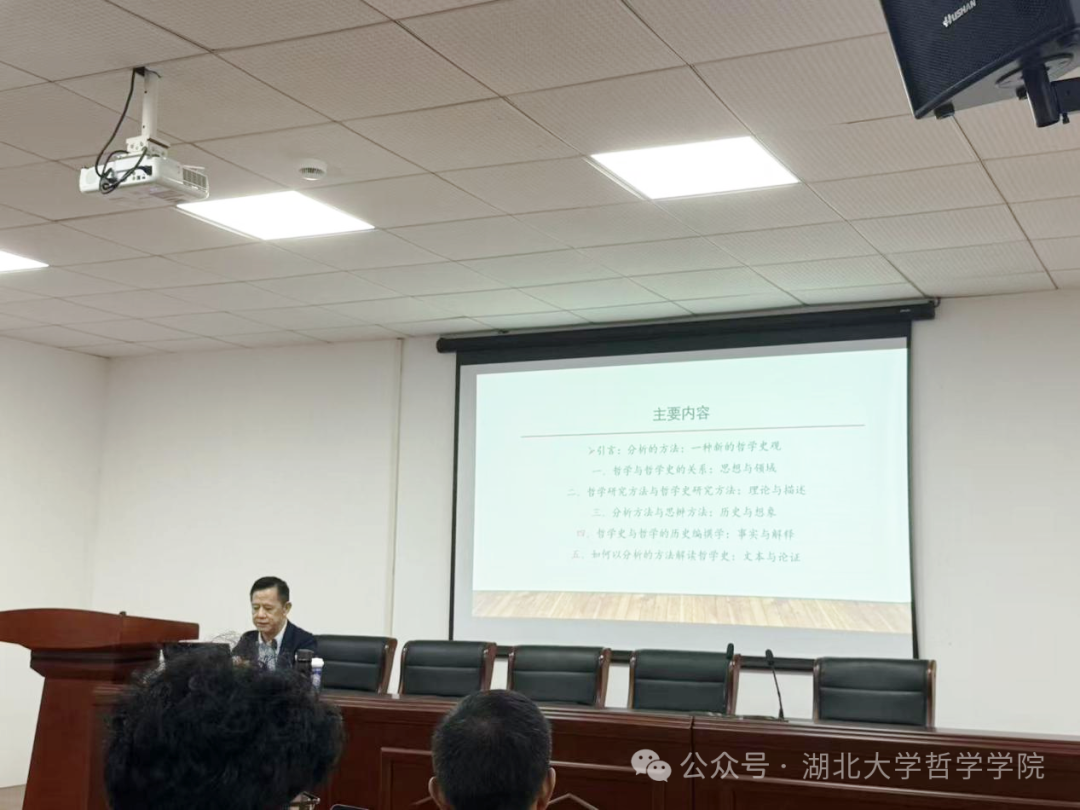 讲座伊始,江老师谈到以分析的方法来揭示西方哲学发展的历史,通过对哲学家论述的文本分析给出哲学家思想的精神面貌。这种分析的方式依据历史文本,借助分析的逻辑和证据,力图揭示哲学家思想的真实面目,借助对文本的分析说明哲学家观点是如何展开论证的。