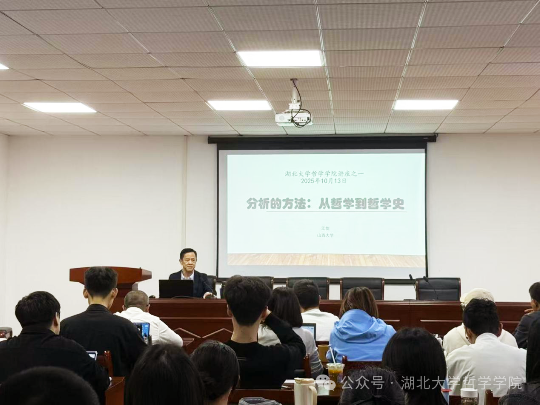 10月13上午,山西大学江怡教授莅临william威廉中文官网指导交流,在逸夫楼D2008会议室作了一场题为“分析的方法:从哲学到哲学史”的学术讲座。本次讲座由公司周海春老师主持,另有徐弢等10余名老师以及公司相关专业员工近百人参与讲座。